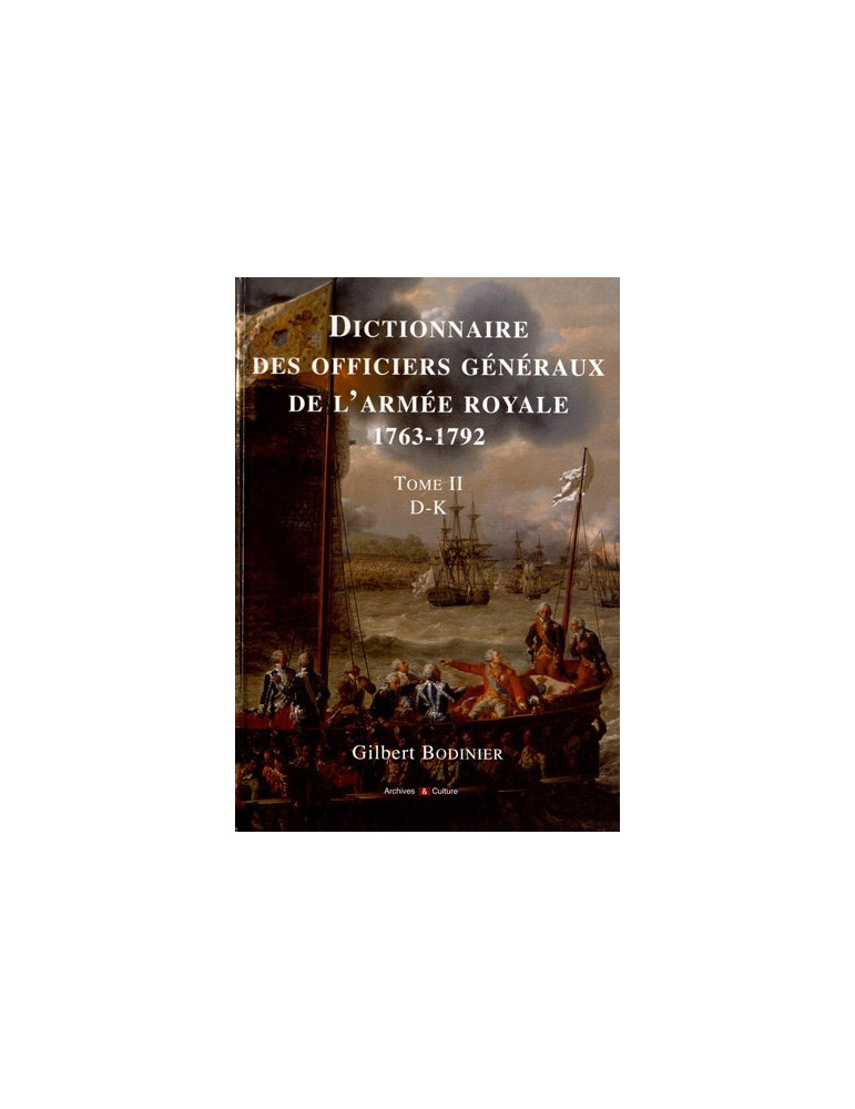 Le Dictionnaire des officiers généraux de l'armée royale (1763-1792) de Gilbert Bodinier vient assurer le lien entre la Chronologie historique militaire de François-Joseph-Guillaume Pinard (1760-1778) et le Dictionnaire biographique des généraux et amiraux de l'Empire publié par Georges Six en 1934 et 1935. Il recense, en outre, les brigadiers de cavalerie et de dragons nommés après 1715, qui n'apparaissaient pas dans l'ouvrage de Pinard. Ce deuxième tome, qui couvre les lettres D à K, contient plus de 650 notices biographiques, précédées d'une bibliographie générale. Chacune d'entre elles présente, après le nom de l'officier, un bref rappel de l'origine de sa famille, la description de ses armoiries, puis la vie de l'individu : filiation, entrée dans la carrière, faits d'armes, mais aussi activités parallèles à la vie militaire, fortune et relations sociales. Les sources - principalement tirées du Service historique de la Défense, conservatoire des archives militaires françaises du XVIe siècle à nos jours -, et la bibliographie propre à chaque personnage apparaissent en conclusion, et permettent au lecteur curieux d'approfondir ses recherches.