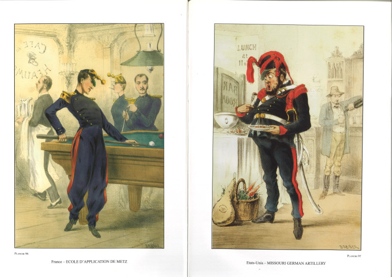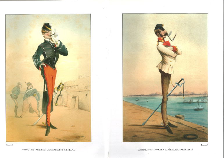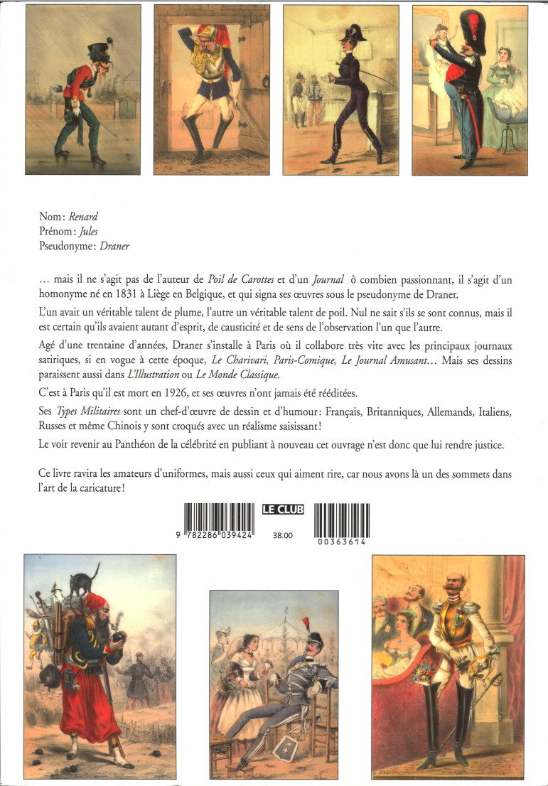 L'illustrateur caricaturiste Draner est né en 1831 à Liège en Belgique. Ses Types Militaires sont un chef-d'œuvre de dessin et d'humour : Français, Britanniques, Allemands, Italiens, Russes et même Chinois y sont croqués avec un réalisme saisissant !