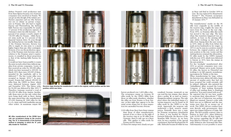 Les modèles 88 ont connus deux périodes d'utilisation: la première a commencé avec le réarmement hâtif des armées allemandes vers 1890 et s'est terminée avec l'introduction des modèles 98 dans les années qui ont précédé 1914. C'était pendant la Première Guerre mondiale, lorsque une grave pénurie d'armes à feu s'est faite ressentir, que nombre de ces armes, qui avaient déjà été mises hors service, ont été à nouveau sorties des dépôts et réactivées. Ces deux périodes sont couvertes dans ce livre.