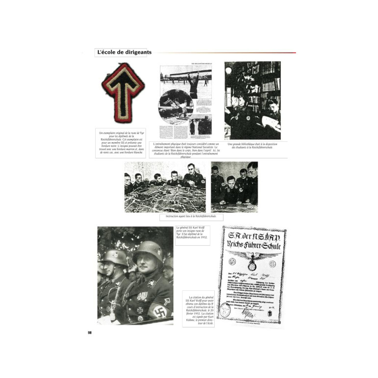 C'est ainsi qu'à côté de l'organisation générale, des unités encasernées et à disposition, cet ouvrage présente le projet de nouvelle religion de Himmler, l'organisation de mariage SS, l'Ahnenerbe, le mobilier conçu pour le "coin familial" et même la porcelaine d'Allach.