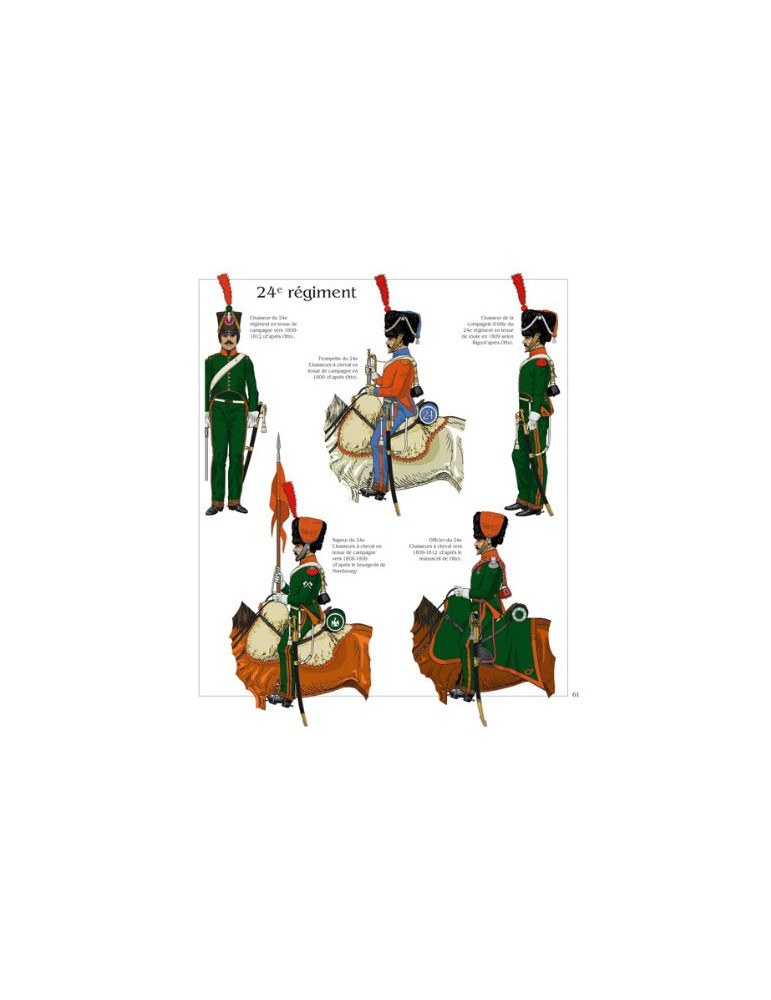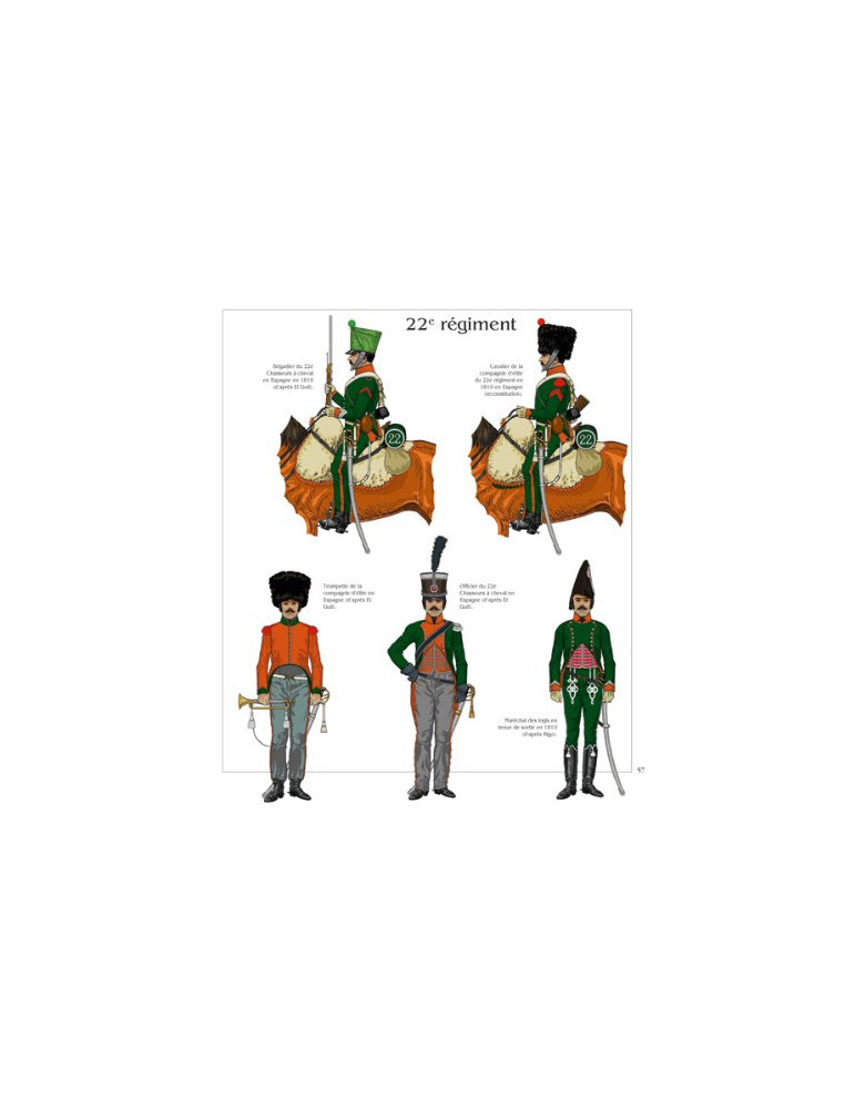 Quinze régiments qui participent à la campagne de Belgique et son épilogue à Waterloo. Le Roi Louis XVIII licenciera ces quinze régiments le 16 juillet 1815, et les chasseurs à cheval disparaîtront de la scène militaire française...pendant deux jours. La période connait bien évidemment son lot de changements uniformologiques dont les plus significatifs seront décrits dans ce dernier tome.