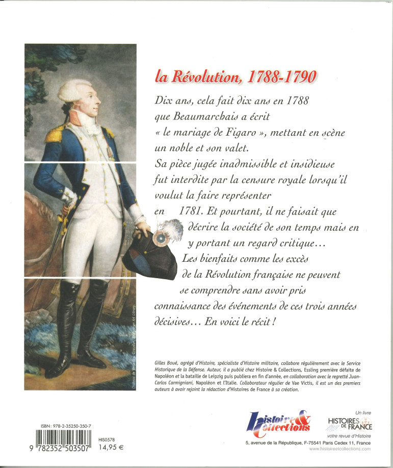 Dix ans, cela fait dix ans en 1788 que Beaumarchais a écrit « le mariage de Figaro », mettant en scène un noble et son valet. Sa pièce jugée inadmissible et insidieuse fut interdite par la censure royale lorsqu'il voulut la faire représenter en 1781. Et pourtant, il ne faisait que décrire la société de son temps mais en y portant un regard critique... Les bienfaits comme les excès de la Révolution française ne peuvent se comprendre sans avoir pris connaissance des événements des ces trois années décisives... En voici le récit !