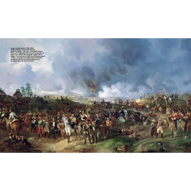 Autour de Leipzig des 14 au 19 octobre 1813, 500 000 hommes vont s'affronter sur ce qui demeure le plus grand champ de bataille des guerres napoléoniennes. Napoléon va combattre pour conserver son emprise sur l'Allemagne et au delà son Empire. Les Russes, auréolés de l'impensable victoire de leur campagne d'hiver de 1812, les Prussiens, forts de leur haine contre la France, les Autrichiens, voulant effacer quinze ans de défaites, s'unissent contre la dernière Grande Armée.