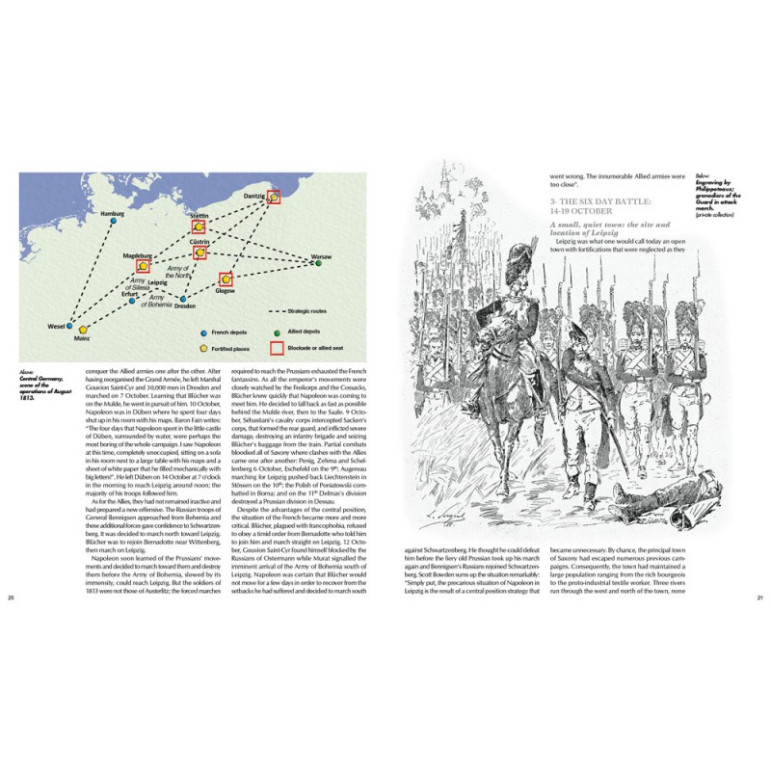 Napoléon a réussi l'exploit de reconstruire une armée crédible sur les ruines de 1812, les jeunes recrues marchent au canon encadrés des survivants de la Bérézina ou des lointaines sierras d'Espagne. La compagne de printemps a jeté le doute dans la coalition, cependant les batailles perdues par les alliés ne font pas leur défaite. Du fond de le Russie, de Prusse, et d'Europe centrale, accourent des centaines de milliers de soldats dons les plaines de Saxe. C'est là sur quelques dizaines de kilomètres carrés que se louera le sort du 1er Empire.