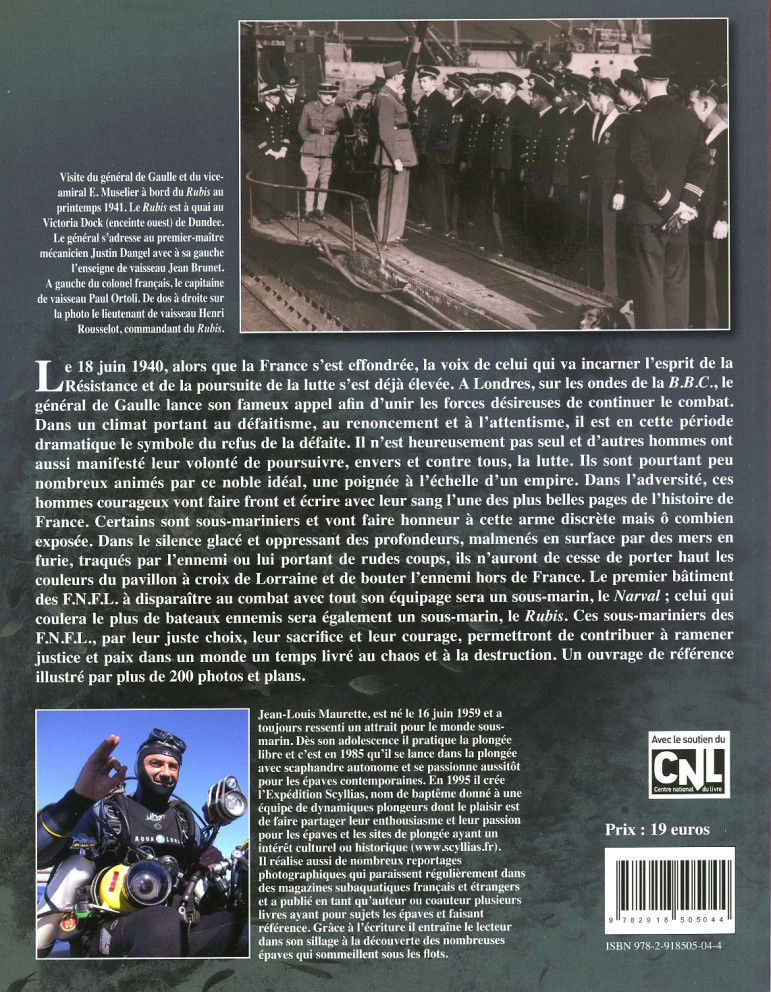 Mais, dans l’adversité, ces hommes courageux vont faire front et écrire avec leur sang l’une des plus belles pages de l’histoire de France. Le premier bâtiment des FNFL à disparaître au combat avec tout son équipage sera un sous-marin, le Narval ; celui qui coulera le plus de bateaux ennemis sera également un sous-marin, le Rubis. Ces sous-mariniers des FNFL, par leur juste choix, leur sacrifice et leur courage, permettront de contribuer à ramener justice et paix dans un monde un temps livré au chaos et à la destruction.