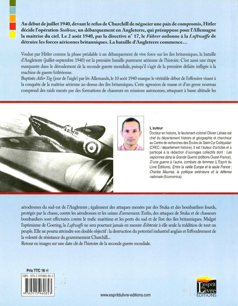 Voulue par Hitler comme la phase préalable à un débarquement de vive force sur les îles britanniques, la bataille d'Angleterre (juillet-septembre 1940) est la première bataille purement aérienne de l'histoire. C'est aussi une étape marquante dans le déroulement de la seconde guerre mondiale, puisqu'il s'agit de la première défaite infligée à la machine de guerre hitlérienne. Baptisée Adler Tag (jour de l'aigle) par les Allemands, le 10 août 1940 marque le véritable début de l'offensive visant à la conquête de la maîtrise aérienne au-dessus des îles britanniques. Cette agression de masse et d'un genre nouveau comprend des raids menés par des formations de chasseurs en missions autonomes, attaquant à basse altitude les aérodromes du sud-est de l'Angleterre ; également des attaques menées par des Stuka et des bombardiers lourds, protégés par la chasse, contre les aérodromes et les usines d'armement.