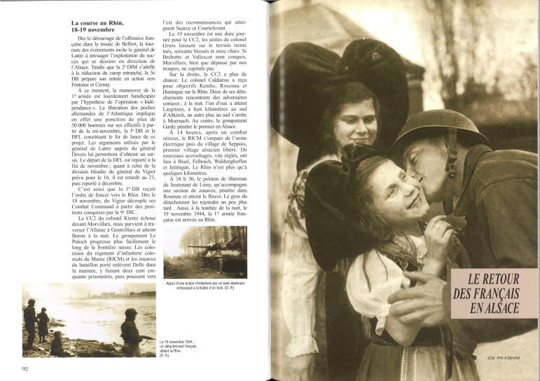 Plus que le récit d'une campagne longue, douloureuse et souvent meurtrière, cet album est un hommage aux résistants alsaciens et lorrains, ainsi qu'aux anciens de la 2e DB et de la 1re armée qui, après avoir opéré leur jonction le 12 septembre 1944 au nord-ouest de Dijon, ont payé le prix fort, celui du sang, pour libérer Belfort, la Lorraine et l'Alsace.