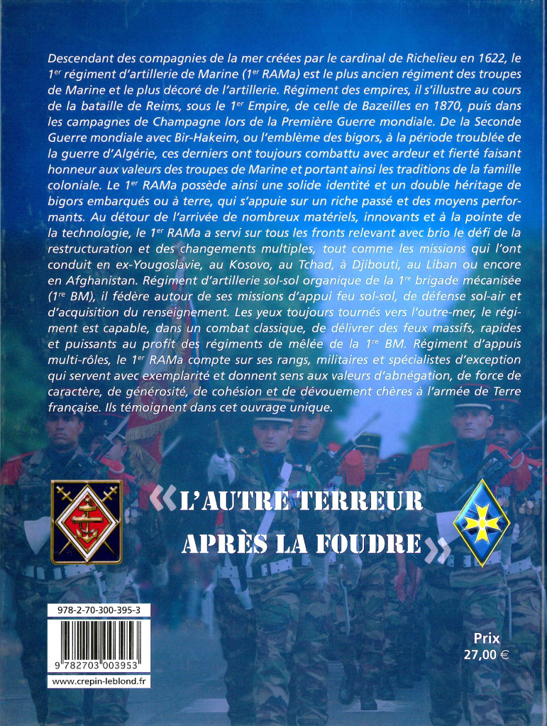 Descendant des compagnies de la mer créées par le cardinal de Richelieu en 1622, le 1er régiment d'artillerie de Marine (1er RAMa) est le plus ancien régiment des troupes de Marine et le plus décoré de l'artillerie. Régiment des empires, il s'illustre au cours de la bataille de Reims, sous le 1er Empire, de celle de Bazeilles en 1870, puis dans les campagnes de Champagne lors de la Première Guerre mondiale.