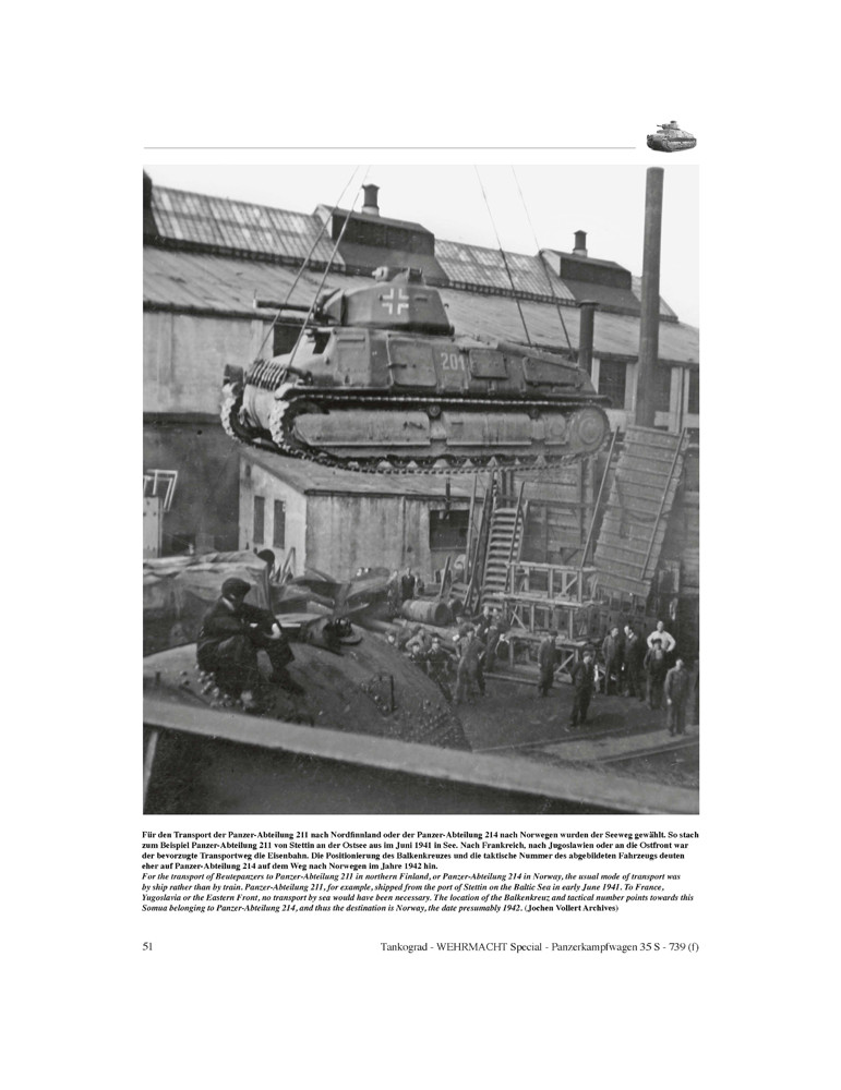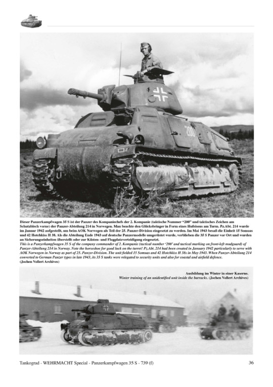 Le char Somua S35, considéré par beaucoup comme le meilleur char français de la guerre, sera l'un des types capturés à devenir également célèbre dans le service allemand. Déployé en France occupée, en Norvège, en Finlande, en Yougoslavie et sur d'autres fronts, il deviendrait un atout vital pour la Wehrmacht dans la lutte contre les partisans et dans l'exercice de ses fonctions de police. Il s'agit de la première monographie sur le Panzerkampfwagen 35 S - 739 (f) désignation officielle par les autorités allemandes et montre la technologie, les variantes et le service du char avec des détails sans précédent.