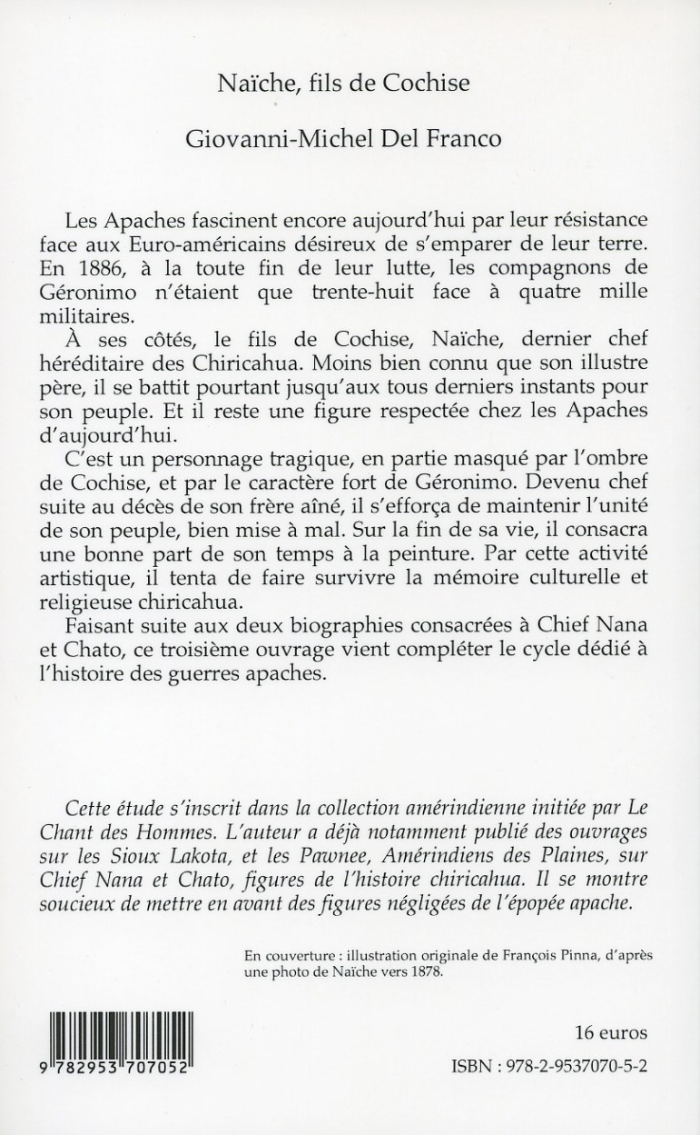 Faisant suite aux deux biographies consacrées à Chief Nana et Chato, ce troisième ouvrage vient compléter le cycle dédié à l'histoire des guerres apaches.