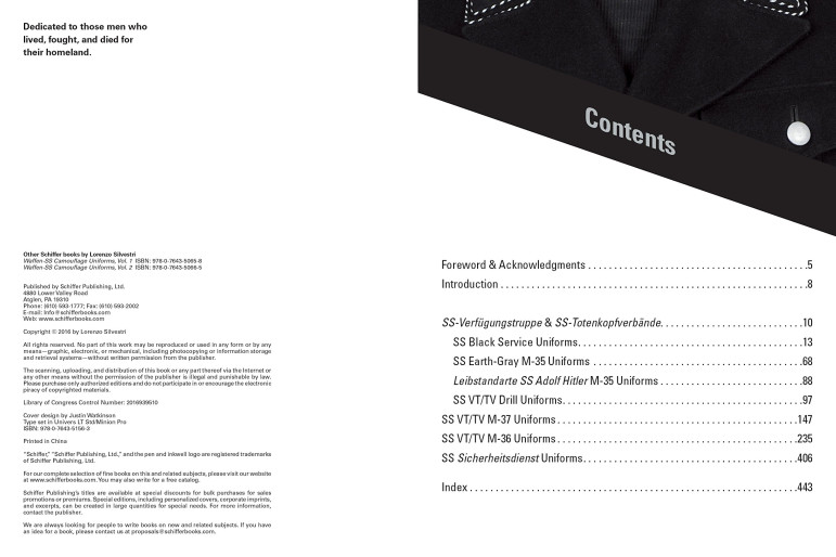 Dans le volume 2, Lorenzo Silvestri présente de nombreux uniformes Waffen-SS différents avec de nombreuses photos en couleur pour montrer comment les vêtements sont apparus. De plus, de nombreuses images détaillées sont utilisées pour exposer clairement les principales caractéristiques des uniformes et de l'équipement.