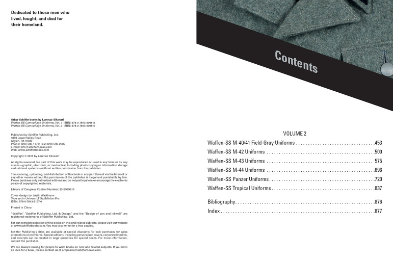 Dans le volume 2, Lorenzo Silvestri présente de nombreux uniformes Waffen-SS différents avec de nombreuses photos en couleur pour montrer comment les vêtements sont apparus. De plus, de nombreuses images détaillées sont utilisées pour exposer clairement les principales caractéristiques des uniformes et de l'équipement.