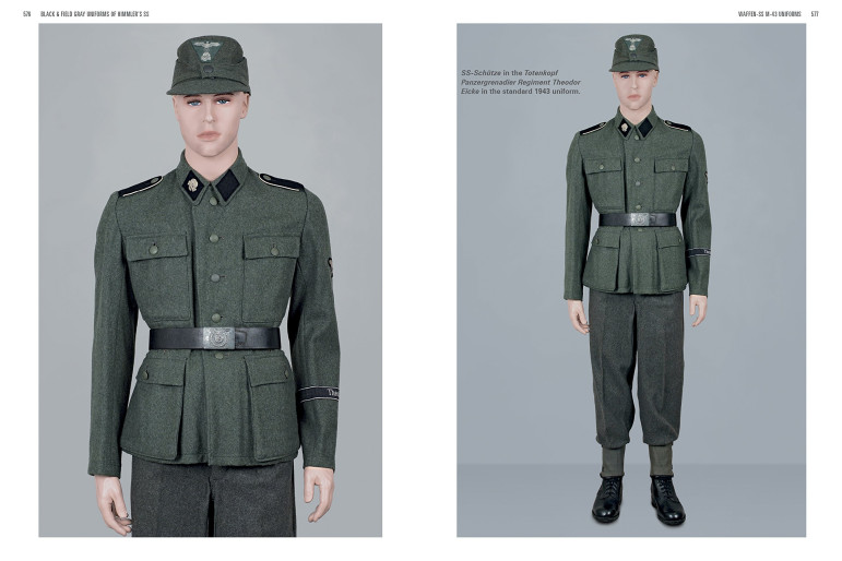 À l'origine l'un des groupes paramilitaires apparus dans les turbulentes années 1920 en Allemagne, les SS sont passés de leurs activités de protection d'origine aux unités « Totenkopf » et à la Verfugungstruppe, et plus tard pendant la Seconde Guerre mondiale, la Waffen-SS. Au cours de son évolution, la SS est passée de son uniforme noir à une variété d'uniformes qui ont fini par ressembler à ceux de l'armée allemande, dans divers types de tissus et principalement en Feldgrau, si souvent vus dans les photographies et les films d'époque.