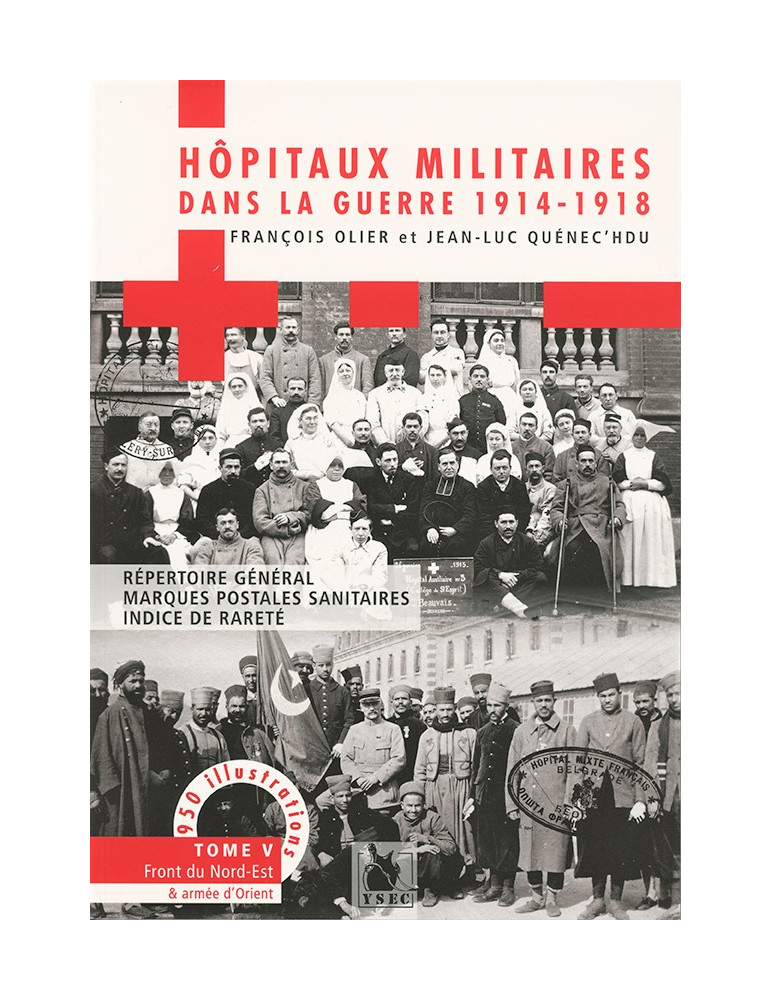 Hôpitaux militaires tome V. Cet ouvrage abondamment illustré est le dernier d’une collection déclinée en cinq tomes. L’ensemble constitue une étude qui se veut exhaustive sur les 10 000 hôpitaux militaires de la Grande Guerre. Ce cinquième tome concerne le nord et l’est de la France. Situé à l’intersection de l’histoire et du monde des collections, hôpitaux militaires tome V devrait satisfaire la curiosité du plus grand nombre. Il fait en effet d’abord apparaître pour chaque formation hospitalière une monographie historique sommaire. Ensuite, un descriptif des marques postales connues et un indice de rareté accompagnent les monographies. L’ensemble de cette collection propose des dossiers thématiques, des précis d’organisation et de fonctionnement. Ainsi, la collection constituera une histoire générale des hôpitaux militaires et du service de santé dans la guerre 1914-1918.