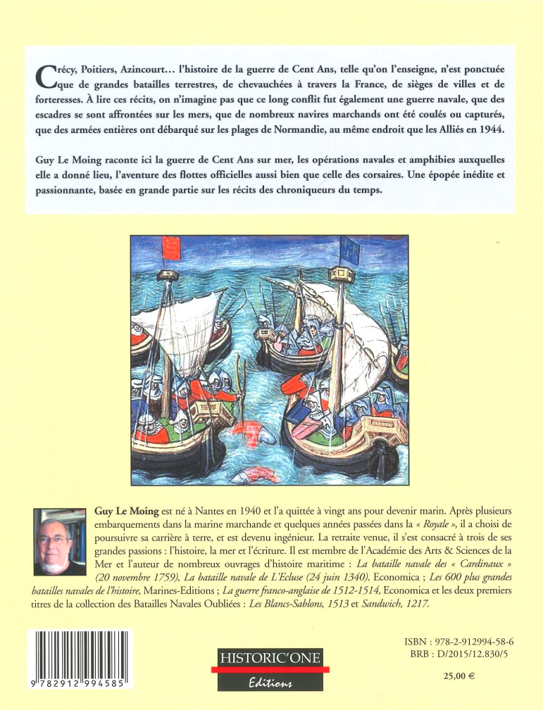 Guy Le Moing raconte ici la guerre de Cent Ans sur mer, les opérations navales et amphibies auxquelles elle a donné lieu, l'aventure des flottes officielles aussi bien que celle des corsaires. Une épopée inédite et passionnante, basée en grande partie sur les récits des chroniqueurs du temps.
