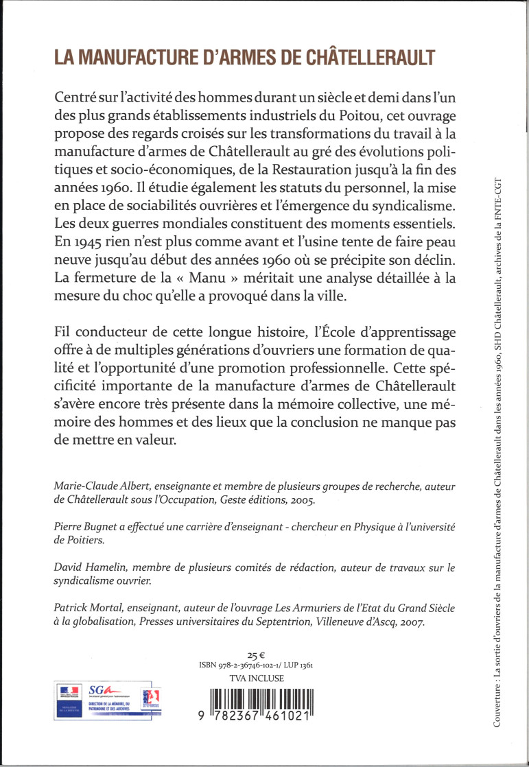 Cet ouvrage consacré à la Manufacture d’armes de Châtellerault, retrace l’histoire de l’usine de 1819 à 1960.