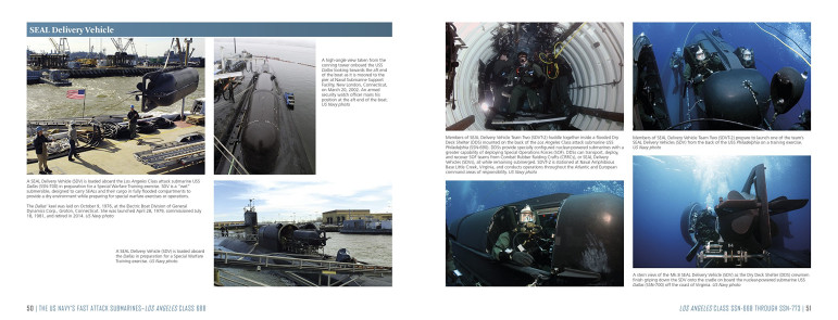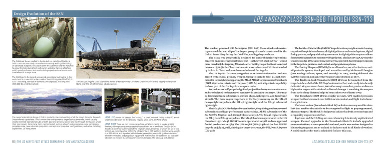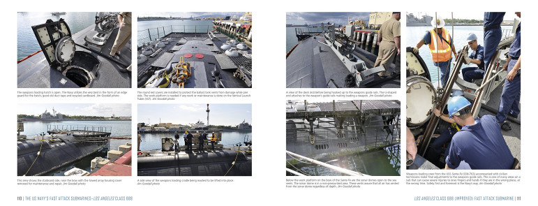 La couverture photographique exclusive et complète de l'intérieur du bateau est présentée ici pour la première fois. Les détails de l'armement des bateaux comprennent: quatre tubes lance-torpilles montés de 21 "supportant la série torpille ADCAP Mk 48, le missile de croisière Tomahawk (BGM-109) et la capacité de missile antinavire Harpoon (UGM-84). permet au lecteur une première vue de ces sous-marins.