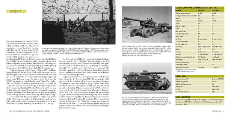 Le M40 Gun Motor Carriage et le M43 Howitzer Motor Carriage sont présentés dans plus de 200 photographies, fournissant une étude détaillée de la conception, du développement, des essais et de l'utilisation au combat de ces véhicules clés. Alors que les Etats-Unis entraient dans la Seconde Guerre mondiale, la nation manquait d'artillerie lourde autopropulsée, se reposant plutôt lourdement sur l'artillerie remorquée, en grande partie excédentaire de la Première Guerre mondiale. Seulement 100 exemplaires du premier canon lourd automoteur de la nation, le M12, ont été construits.