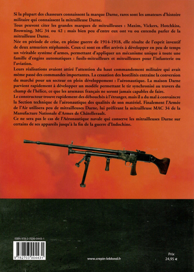 Si la plupart des chasseurs connaissent la marque Darne, rares sont les amateurs d'histoire militaire qui connaissent la mitrailleuse Darne. Tous peuvent citer les grandes marques de mitrailleuses : Maxim, Vickers, Hotchkiss, Browning, MG 34 ou 42 ; mais bien peu d'entre eux ont vu ou entendu parler de la mitrailleuse Darne.