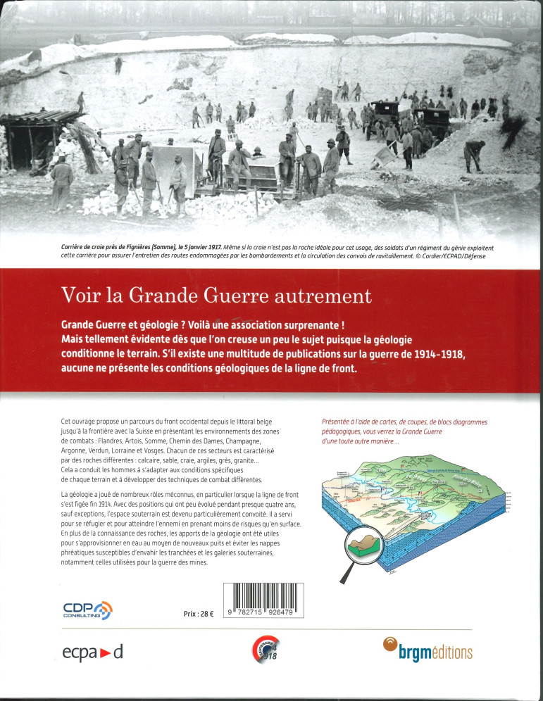 Voir la Grande Guerre autrement. Grande Guerre et géologie ? Voilà une association surprenante ! Mais tellement évidente dès que l'on creuse un peu le sujet puisque la géologie conditionne le terrain. S'il existe une multitude de publications sur la guerre de 1914-1918, aucune ne présente les conditions géologiques de la ligne de front.
