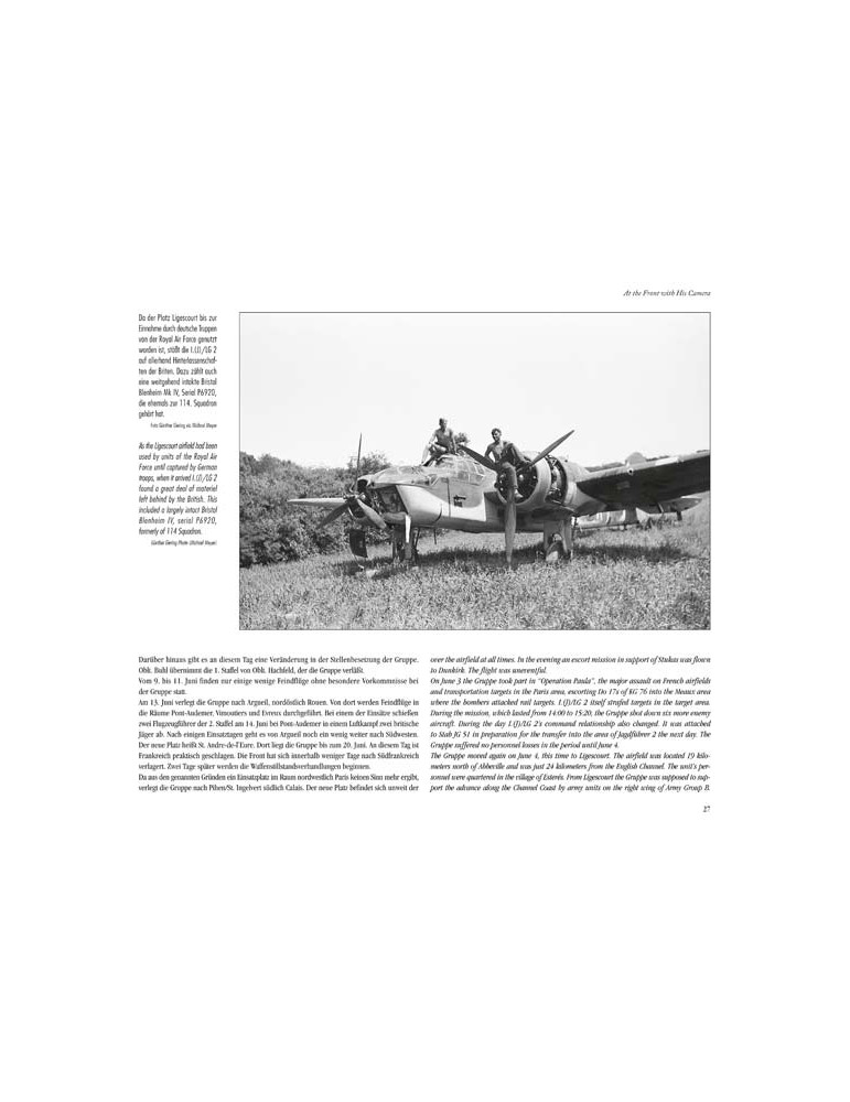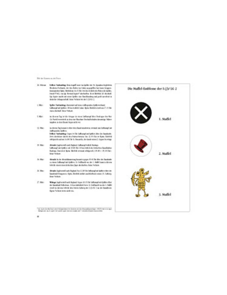 Les images en couleur fournissent des informations complètement nouvelles et inattendues sur les schémas de camouflage, les couleurs de Staffel et les emblèmes. Pour fournir une image complète de l'histoire opérationnelle de I. (J) / LG 2, les images couleur sont complétées par des photos en noir et blanc impressionnantes et jamais vues auparavant des divers pilotes et techniciens qui ont servis avec le Gruppe.