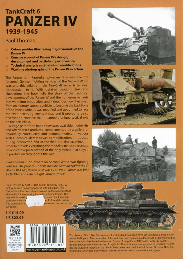 Une grande partie du livre présente des kits de modèles et des produits de rechange disponibles, complétés par une galerie de modèles magnifiquement construits et peints à différentes échelles. Les détails techniques ainsi que les modifications introduites pendant la production et sur le terrain sont également examinés afin de fournir tout ce dont le modélisateur a besoin pour recréer une représentation précise du seul Panzer qui est resté en production tout au long de la guerre.