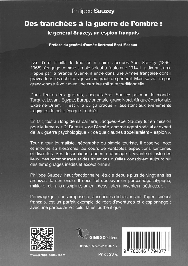 La vie de Jacques-Abel Sauzey, durant laquelle les missions menées tout au long de sa carrière de militaire pour le compte du très discret "Deuxième Bureau" de l'Armée tiennent une place essentielle, est l'exemple parfait des récits d'aventures d'espions et autres "honorables correspondants". Elle est cependant plus simple, plus belle et surtout authentique.