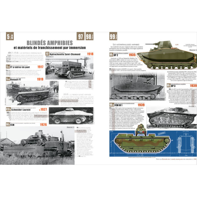 Présentés un à un sous une forme encyclopédique, tous ces matériels sont réunis ici en un panorama absolument complet : 100 engins principaux (chars de combat et automitrailleuses) et 284 variantes et matériels dérivés (transports de troupes, poseurs de pont, chars saute-mines, etc.). Un texte concis et d une synthèse absolue, des tableaux généalogiques d'une extrême précision, toutes les fiches techniques des principaux engins, une illustration à profusion, constituée de rares photographies d'époque et de somptueux profils en couleurs, tous à échelle constante, font de cet ouvrage l'incontournable bible du sujet.
