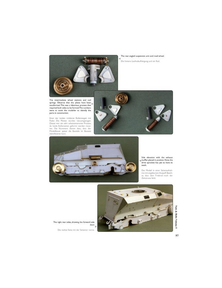 Ce volume 05 contient 242 photos, dont 88 photos historiques de la guerre en n/b, certaines inédites ; 127 photos couleur des véhicules existants dans les musées et collections privées ; 27 photos couleur du Master Modeler Tony Greenland ; 8 pages de texte allemand / anglais ; 10 pages de dessins de toutes les variantes et détails connus à l'échelle 1:35 de John L. Rue ; tableau avec les numéros de licence des unités qui avaient ce véhicule dans leur inventaire.