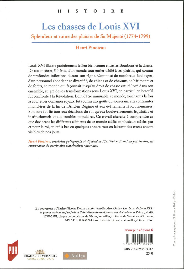 Louis XVI illustre parfaitement le lien bien connu entre les Bourbons et la chasse. De ses ancêtres, il hérita d'un monde tout entier dédié à ses plaisirs, qui connut de profondes inflexions durant son règne. Composé de nombreux équipages, d'un personnel abondant et diversifié, de chiens et de chevaux, de bâtiments et de forêts, ce monde qui façonnait jusqu'au droit de chasse est ici livré dans son ensemble, au gré de ses transformations sous Louis XVI, en particulier lorsqu'il fut confronté à la Révolution.