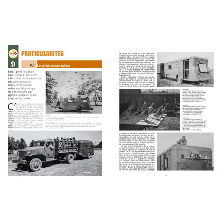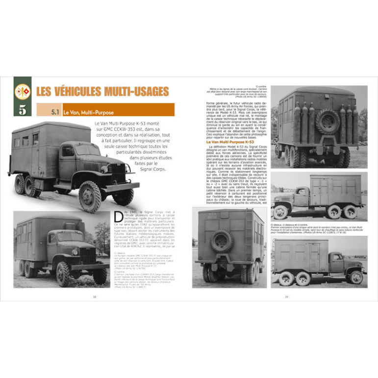 Parmi les grandes familles de véhicules de l’US Army, on trouve donc des camions, camions-ateliers, camionnettes et remorques conçus par le Signal Corps, décrits dans leur détail technique et illustrés par des centaines de photos d’époque.