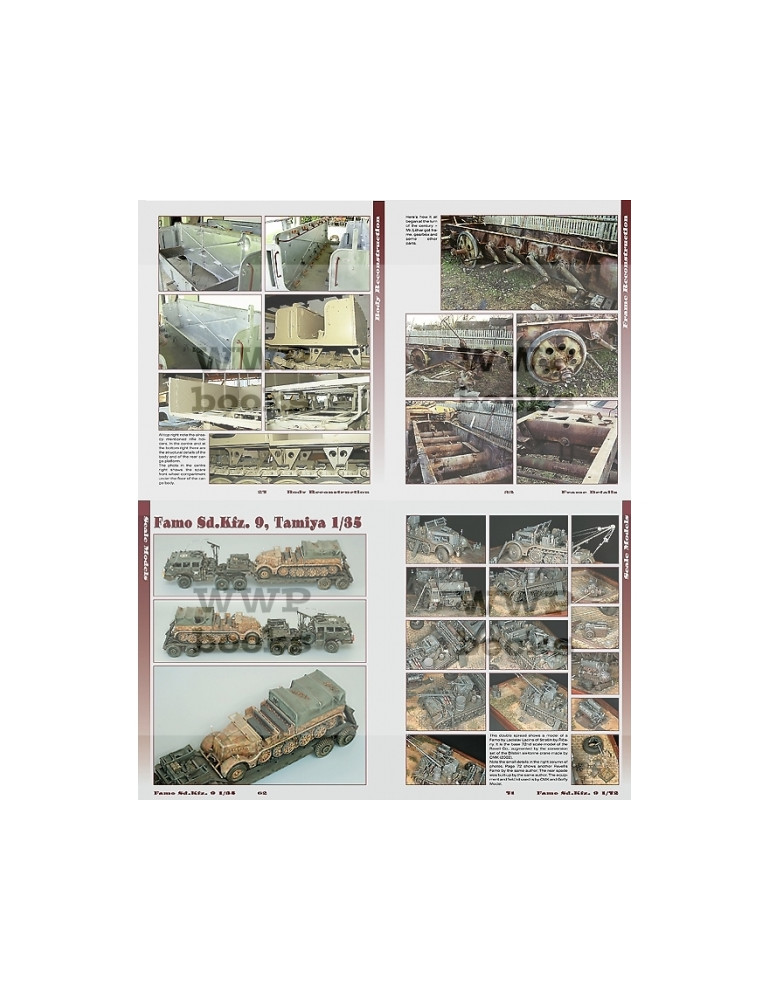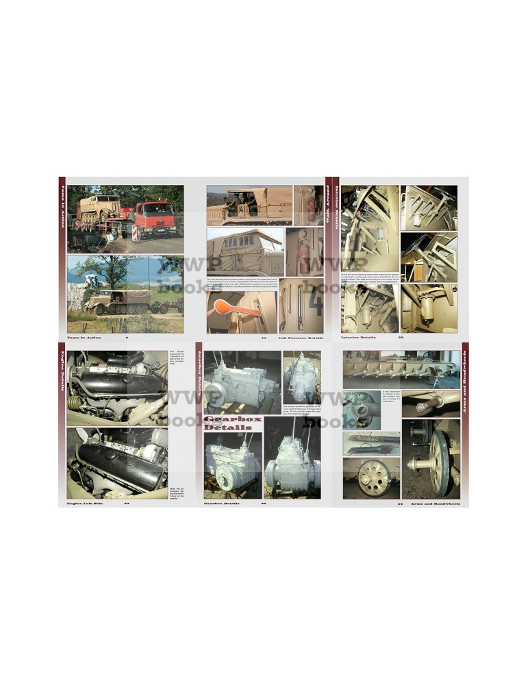 Ce livre offre au lecteur de magnifiques photos couleur en gros plan de semi-chenillés FAMO Sd. Kfz. 9 conservés par des collectionneurs. Les engins sont littéralement photographiés sous toutes les coutures ! Poste de pilotage, tableau de bord, sièges, caissons, accessoires, train de roulement/chenilles, outillage, éclairage, etc. Le dernier chapitre présente quelques magnifiques réalisations de modèles réduits.