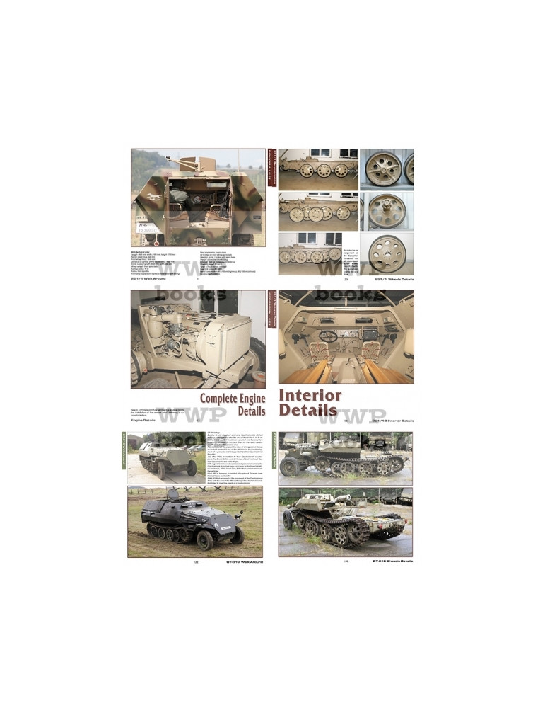 Ce livre offre au lecteur de magnifiques photos couleur en gros plan de semi-chenillés Sd. Kfz. 251/1 Ausf. D allemands et OT-810 tchèques conservés par des collectionneurs. Les engins sont littéralement photographiés sous toutes les coutures ! Poste de pilotage, tableau de bord, sièges, caissons, accessoires, train de roulement/chenilles, outillage, éclairage, armement, etc.