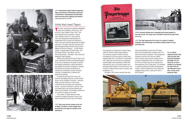 En plus d'offrir des informations uniques sur la maintenance et la conduite du Tiger, le livre comprend des souvenirs personnels vifs de membres d'équipage de chars allemands en temps de guerre et révèle ce que c'était que d'utiliser ce géant de 57 tonnes au combat. Il a été écrit par une équipe d'experts du Tank Museum qui ont été étroitement impliqués dans le démontage et la reconstruction du Tiger I.