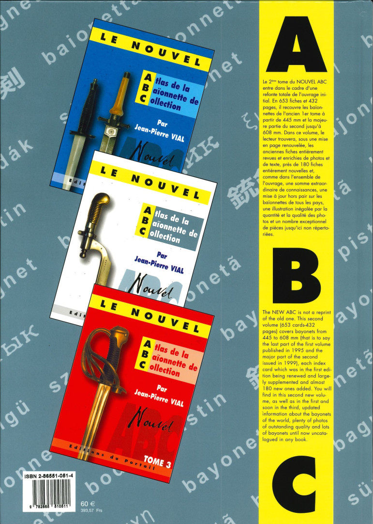 Découvrez Le Nouvel Atlas de la Baïonnette de Collection Tome 2 par P. Vial. Ce guide illustré de 432 pages, avec photos et dessins, facilite l'identification des baïonnettes de plus de 445 mm. Parfait pour les collectionneurs passionnés. ISBN : 9782865510511.