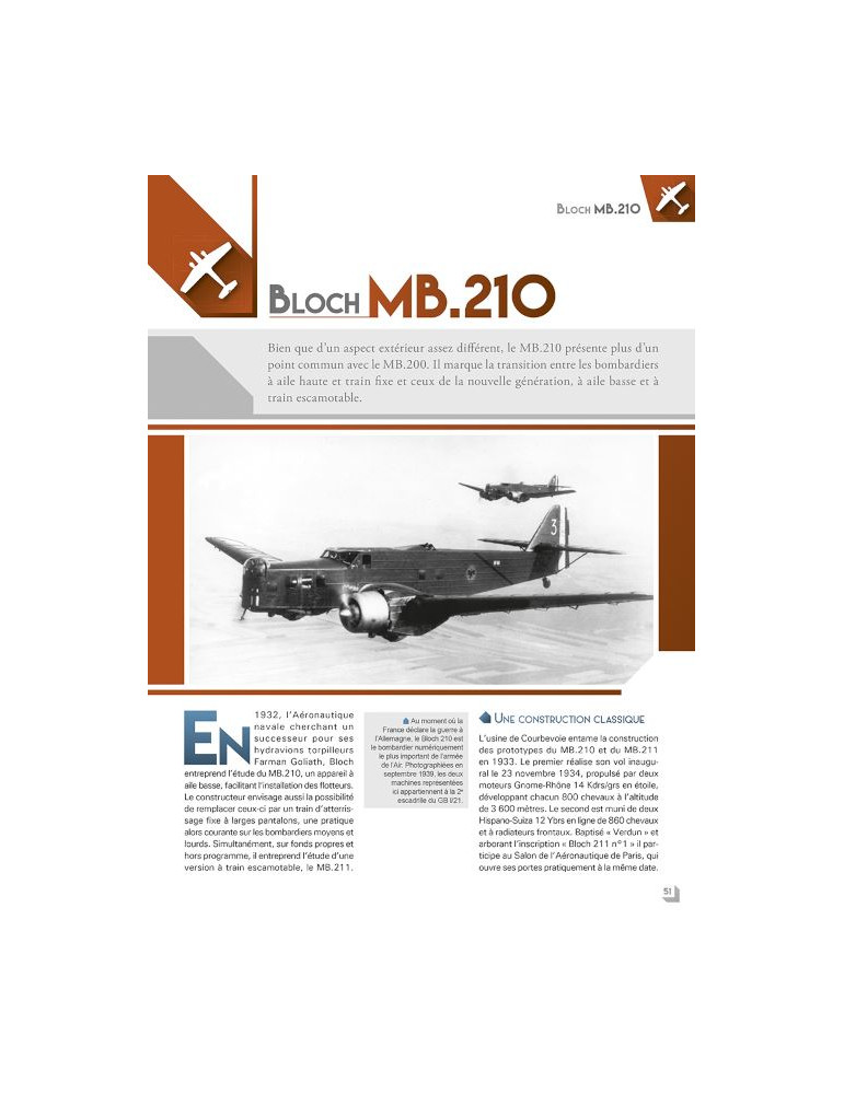 Un ouvrage luxueux, fruit d’un travail minutieux, illustré de nombreuses photographies inédites qui vous permettra d’être incollable dans un domaine méconnu. Les Amiot 143, Bloch 200 et autres Farman 223 n’auront plus de secret pour vous grâce à des textes synthétiques, et didactiques, mêlant technique et histoire. Une étude de référence abordant tous les appareils utilisés dans des missions de la dernière chance, et parfois suicides, visant à stopper le rouleau compresseur allemand en mai 1940.