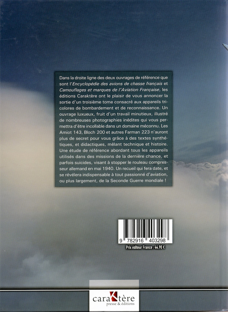 Dans la droite ligne des deux ouvrages de référence que sont « l’Encyclopédie des avions de chasse français » et « Camouflages et marques de l'Aviation Française », les éditions Caraktère ont le plaisir de vous annoncer la sortie d’un troisième tome consacré aux appareils tricolores de bombardement et de reconnaissance.