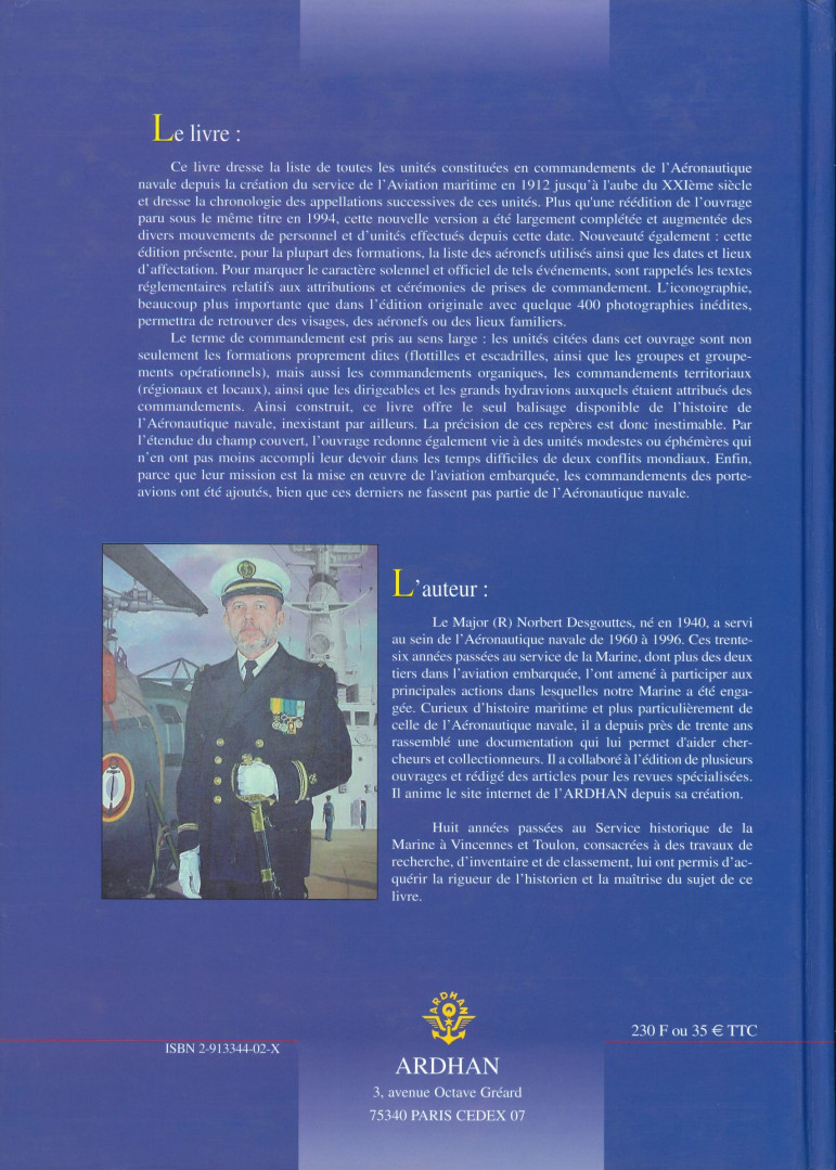 Par le Major (R) Norbert Desgouttes. Ed. ARDHAN. 304 pages illustrées, photos n&b et couleur, format 21,8 1,9 x x 30,7 cm, relié, ref: 119106