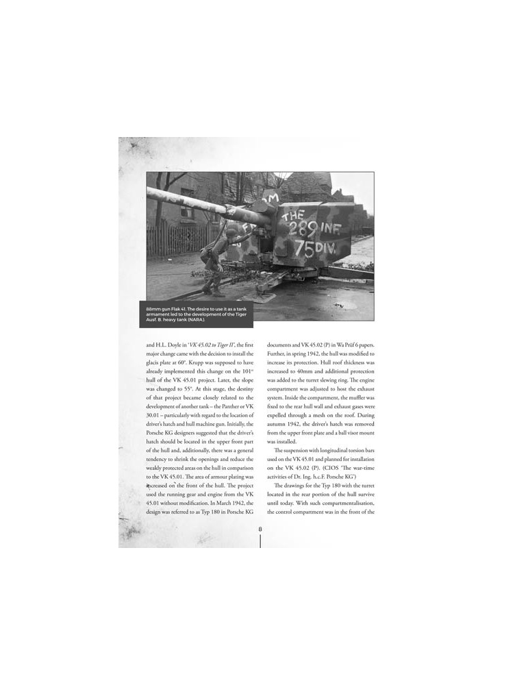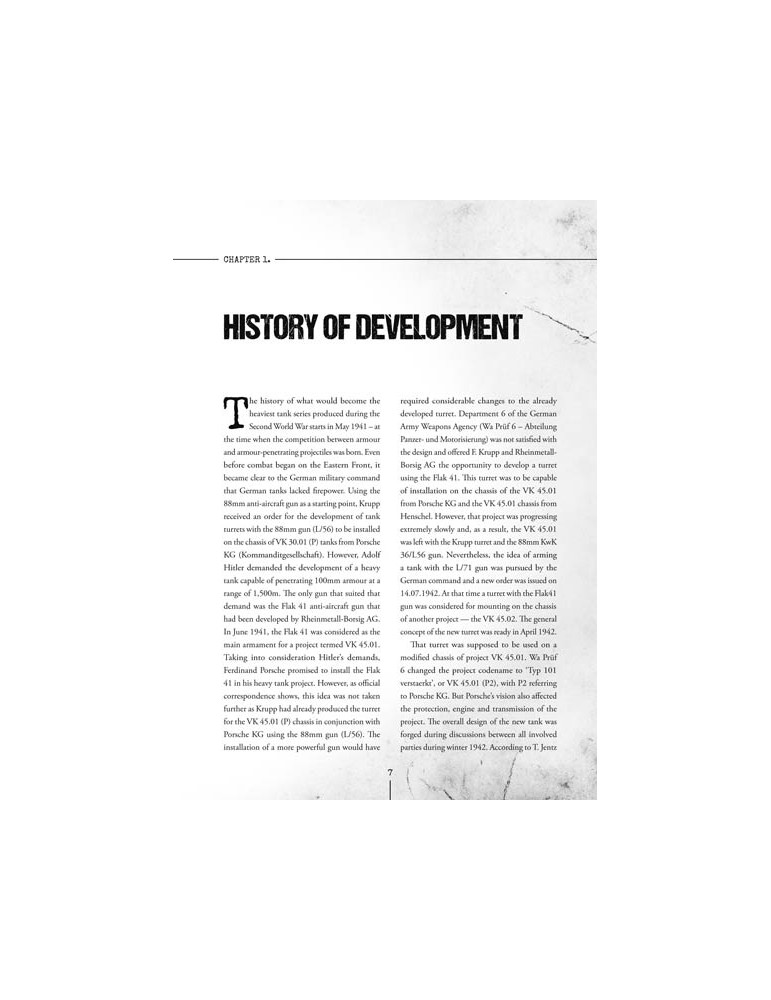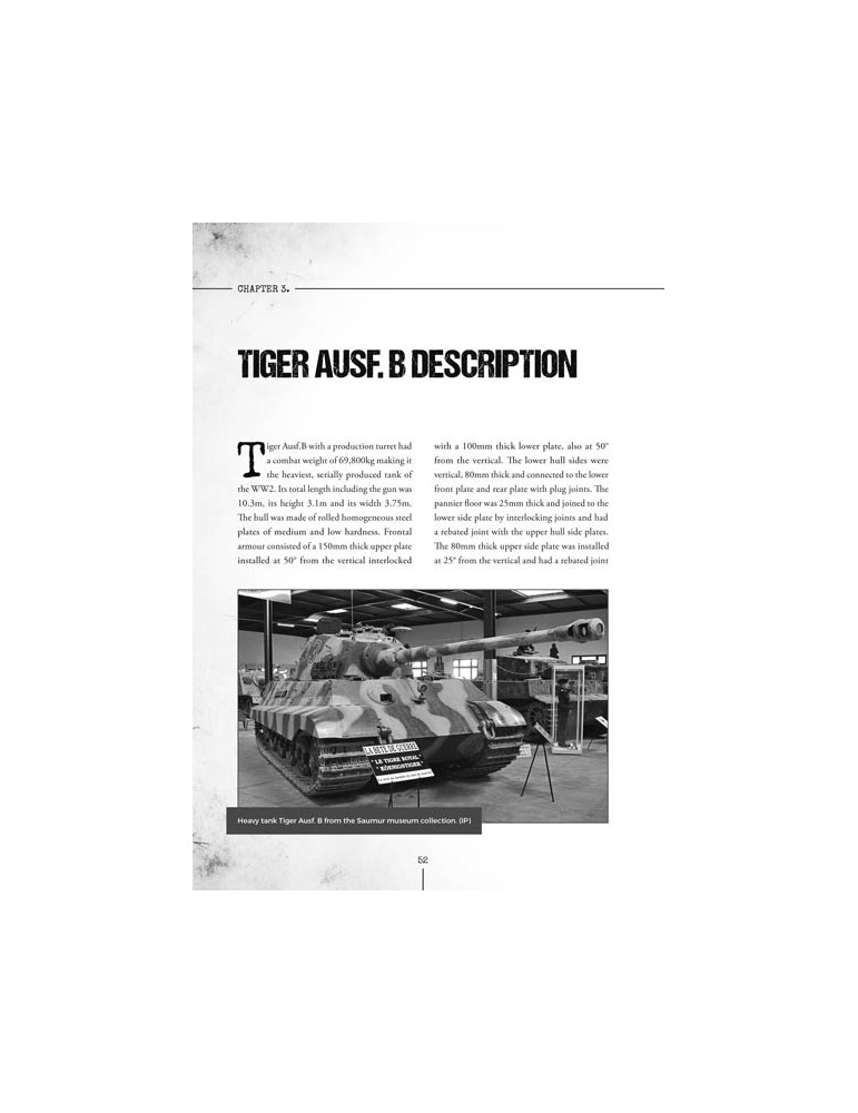 Le Tigre Ausf. B a combiné les avantages et les inconvénients de la conception et de la construction des chars allemands. Les idées pour le Tiger II étaient basées sur des conceptions précédentes et omettaient les excès et les inconvénients des véhicules précédents. C'est le char qui nous permet d'évaluer ce que l'industrie allemande a réalisée et ce qui aurait pu se passer dans les développements futurs. Le livre traite de l'historique et du développement du Tiger Ausf.B, de l'historique de la production et des caractéristiques de construction, ainsi que de l'évaluation des véhicules capturés par l'Armée rouge lors des essais sur le terrain.