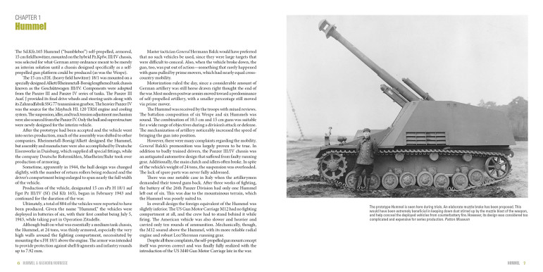Le Hummel ( bourdon ) et le Nashorn (rhinocéros ) sont deux des pièces d'artillerie automotrices les plus connues de l'Allemagne nazie. Le Hummel, avec son obusier de campagne lourd, était indispensable comme artillerie de campagne lourde malgré son compartiment de combat à toit ouvert. Le Nashorn, également connu sous le nom de Hornisse ("" frelon ""), utilisait le même châssis mais était équipé du formidable canon antichar de 88 mm, devenant l'une des pièces d'artillerie antichar "Panzerjager" les plus redoutées.