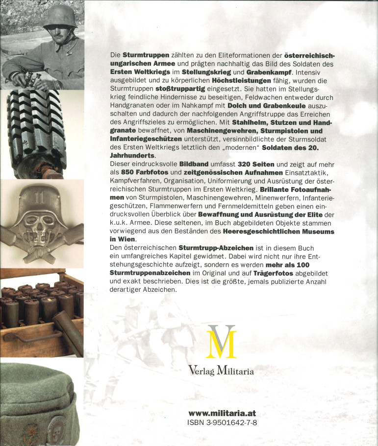 Les archives proviennent du fond du Heeresgeschichtliches Museum à Vienne Un chapitre complet de ce livre est consacré aux insignes des troupes d'assaut autrichiennes, qui non seulement montre l'histoire de leur création, mais présente également plus de 100 originaux.