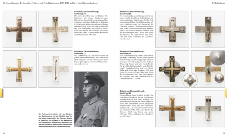 Pour la première fois, non seulement les insignes des Freikorps allemands, mais aussi celles d'autres troupes de volontaires, des services résidents et des formations d'autoprotection sont décrites et illustrées dans ce livre illustré de 544 pages. Ces insignes ont été donnés et décernés pendant et après les batailles d'après-guerre pour des opérations chez les gardes-frontières ou contre des opposants politiques en Allemagne.