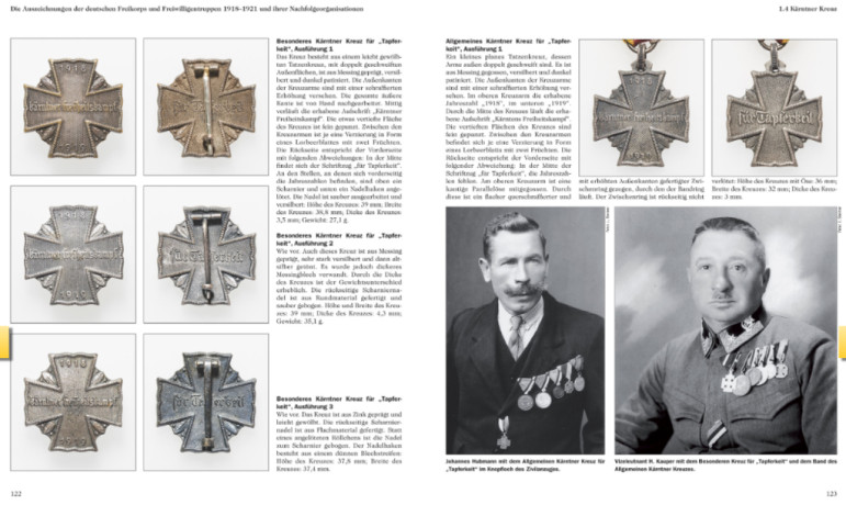 En raison d'un manque de reconnaissance de l'État et pour améliorer leurs propres troupes, les corps de volontaires et les chefs de troupe ont créé leurs propres récompenses, qui ont été décernées pour récompenser la bravoure, la loyauté ou le service. Leur spectre allait de simples épingles à une croix portée au cou ou une étoile de poitrine élaborée. Puisqu'il n'y avait initialement aucune réglementation de fabrication contraignante pour les achats publics et privés, chaque fabricant a produit ses propres échantillons. Cela a conduit à une énorme variété et à une richesse presque ingérable de variantes. Une grande partie de ces éléments se retrouve systématiquement classée, décrites et illustrées dans cet ouvrage, ainsi que des documents et certificats. Des photos d'époque montrent les détenteurs et des exemples de plusieurs de ces insignes portés.