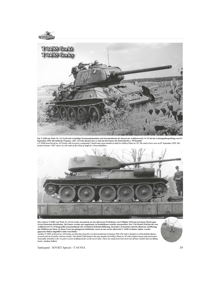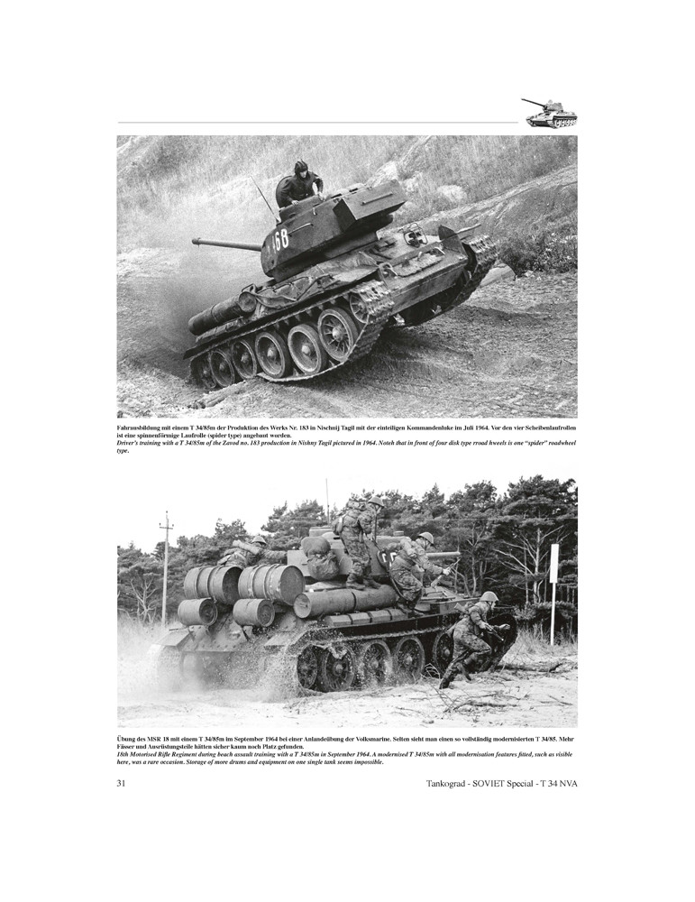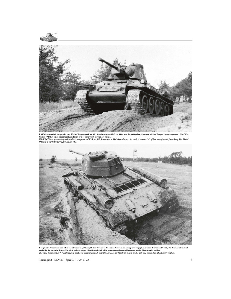 Cette publication décrit en détail les différents lots de production du T 34 dans la DDR, les efforts de modernisation, les variantes et enfin et surtout l'histoire des unités équipées du T 34 des Kasernierte Volkspolizei (KVP) et Nationale Volksarmee (NVA) de le DDR.
