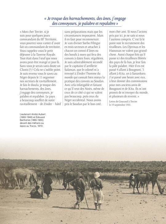 10 000... Tel est le nombre de photographies du fonds Gouraud aux archives du Quai d’Orsay. Pour accumuler un tel nombre de clichés à une époque où la photographie présentait encore de grandes difficultés techniques, il fallait une curiosité rare et une détermination à toute épreuve. Deux qualités qui ne manquaient pas au général Gouraud : tout au long de sa carrière, du Mali au Liban, du Maroc à la Syrie, il ne cessa de faire photographier tout ce qui lui semblait intéressant : militaires français, populations indigènes, autorités locales, fêtes religieuses, vestiges antiques... Il laisse ainsi à la postérité un témoignage photographique unique. Grâce aux 200 clichés les plus étonnants, Henri Gouraud, photographies d’Afrique et d’Orient invite le lecteur à un passionnant voyage photographique, en Afrique et en Orient, il y a un siècle...