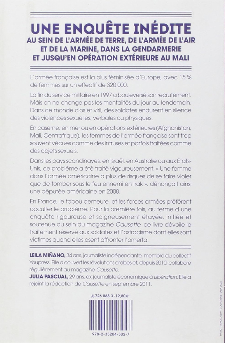 La fin du service militaire en 1997 a bouleversé son recrutement. Mais on ne change pas les mentalités du jour au lendemain. Dans ce monde clos et viril, des soldates endurent en silence des violences sexuelles, verbales ou physiques. Une enquête inédite au sein de l'armée de Terre, de l'armée de l'Air et de la Marine, dans la Gendarmerie et jusqu'en opération extérieure au Mali.