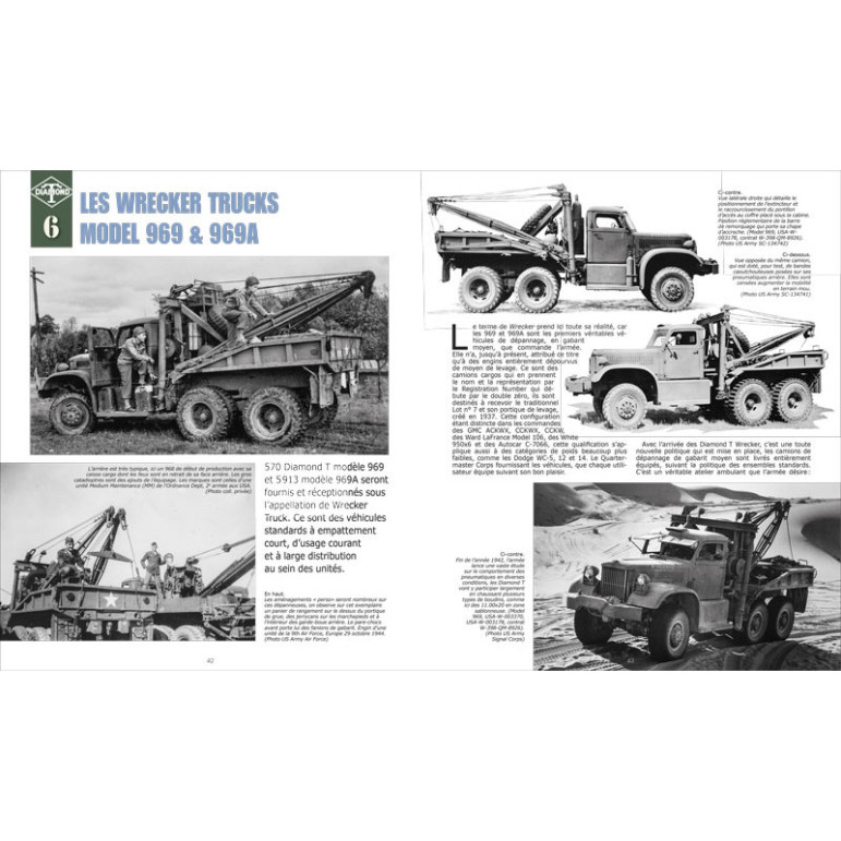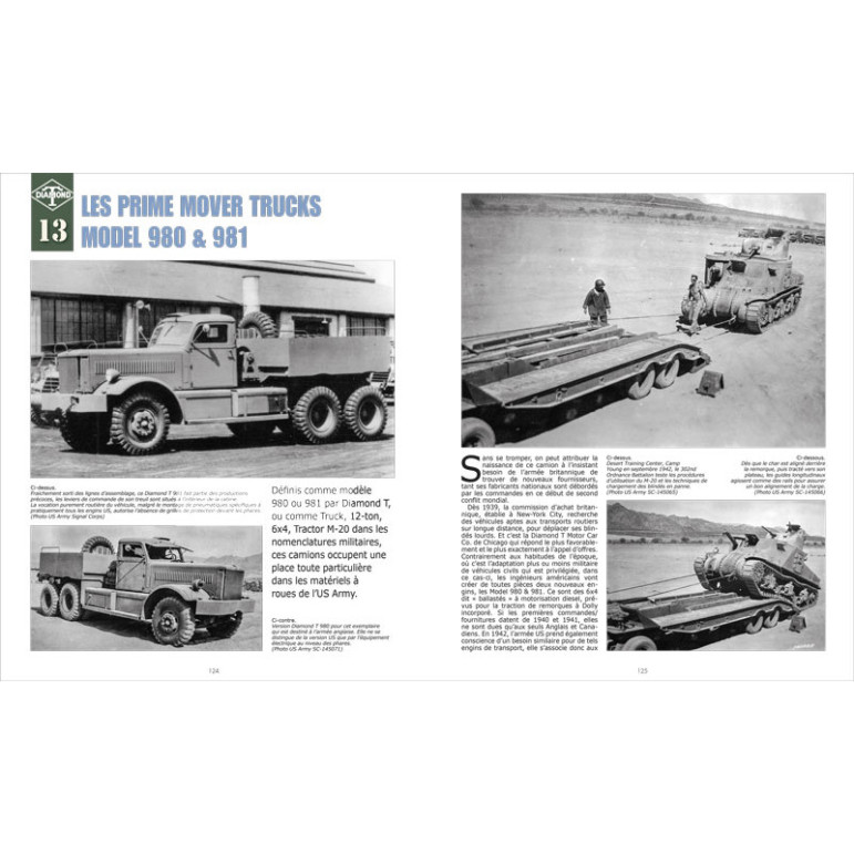 Entre 1940 et 1945, ce sont un peu plus de 50 000 véhicules que la Diamond T Motor Car Company livre à l’armée américaine ainsi qu’aux Alliés. Dans cette production, un peu plus de 30 000 sont des camions lourds 4-ton, 6x6, qui connaîtront de nombreuses versions : cargo, dépanneuse, porte-ponton, benne du génie, caisse cartographique, etc. Le « Diamond » sera présent sur tous les théâtres d’opérations, là où sa robustesse et sa fiabilité lui permettront d’assumer toutes les tâches sans faiblir. En raison de son savoir-faire en matière d’engins lourds, Diamond T sera aussi mis à contribution pour la production du célèbre Half-track, avec plus de 10 000 exemplaires. L’ensemble de ces modèles sont décrits dans cet ouvrage par un grand spécialiste de la question, à l’aide d’archives et de centaines de photos d’époque.
