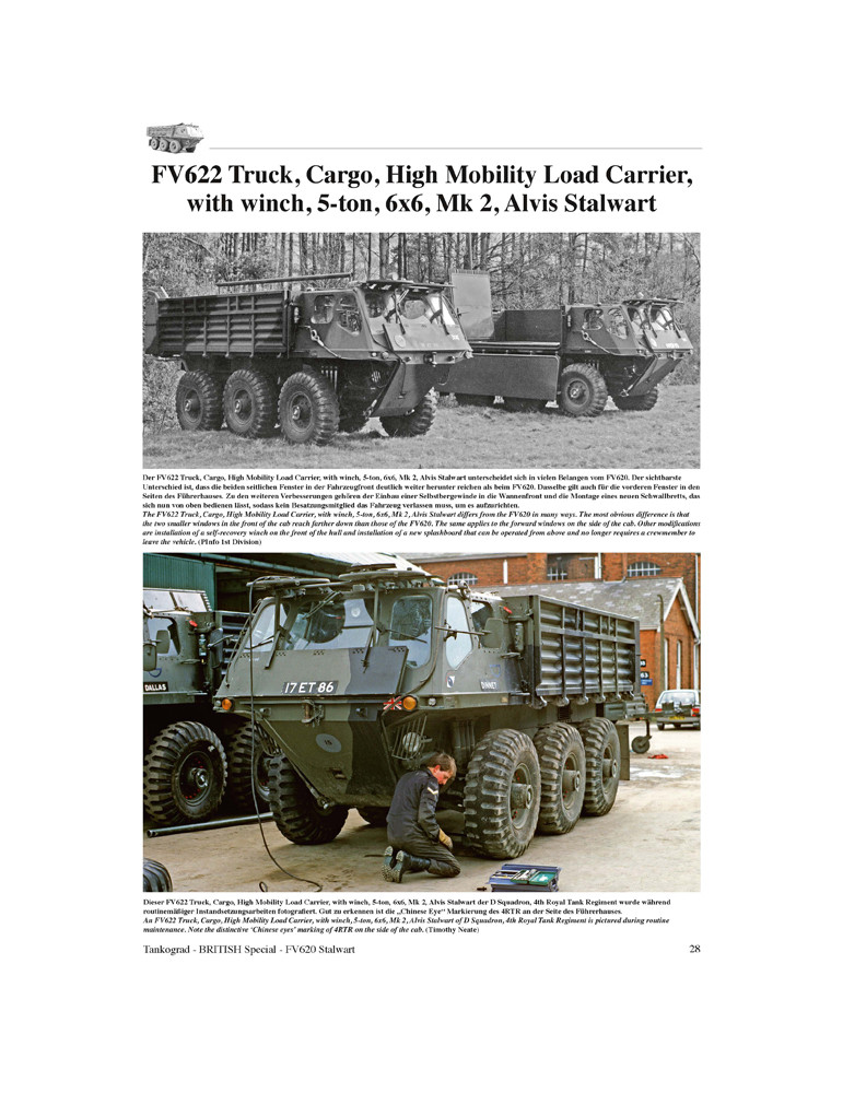 Parmi les conceptions de camions militaires britanniques les plus emblématiques de la guerre froide se trouve la famille de véhicules FV620 Stalwart. Il s'agit d'une série de porte-charges 6x6 amphibies à haute mobilité conçus et fabriqués par Alvis qui ont servi dans l'armée britannique sur une période de trente ans, de 1963 à 1993. Les variantes proposées (et couvertes dans cette publication) sont les suivantes: