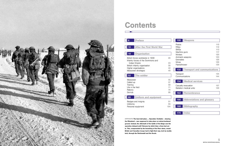 Ce livre ne couvre pas les progrès de la Seconde Guerre mondiale, mais examine en détail les armes, l'uniforme, les insignes, les accessoires, l'équipement, les véhicules, l'artillerie et les tactiques du fantassin britannique de la Seconde Guerre mondiale.