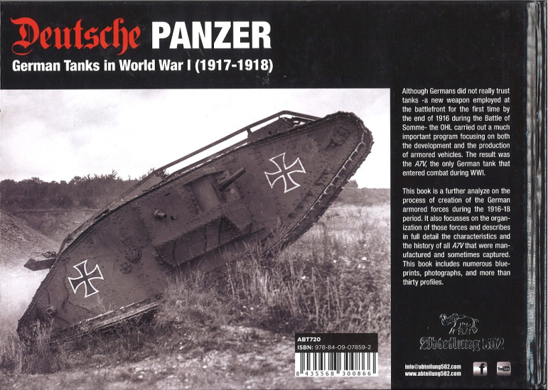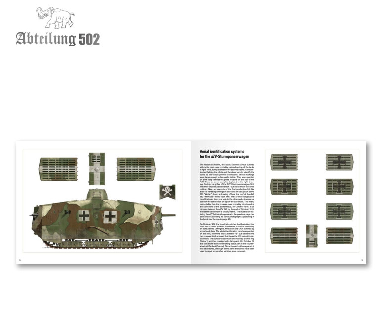 Bien que l'armée allemande n'ait utilisé qu'une poignée de chars pendant la Première Guerre mondiale, ils suscitent toujours beaucoup d'intérêt de la part des maquettistes et des historiens. Cette publication donne un aperçu du service de chars dans l'armée allemande en 1917-1918, et fournit un aperçu détaillé de l'histoire et des schémas de peinture du seul char de combat qui avait été fabriqué en Allemagne pendant la Première Guerre mondiale, l'A7V. Un certain nombre de chars capturés qui avaient été utilisés par les Allemands sont également couverts.